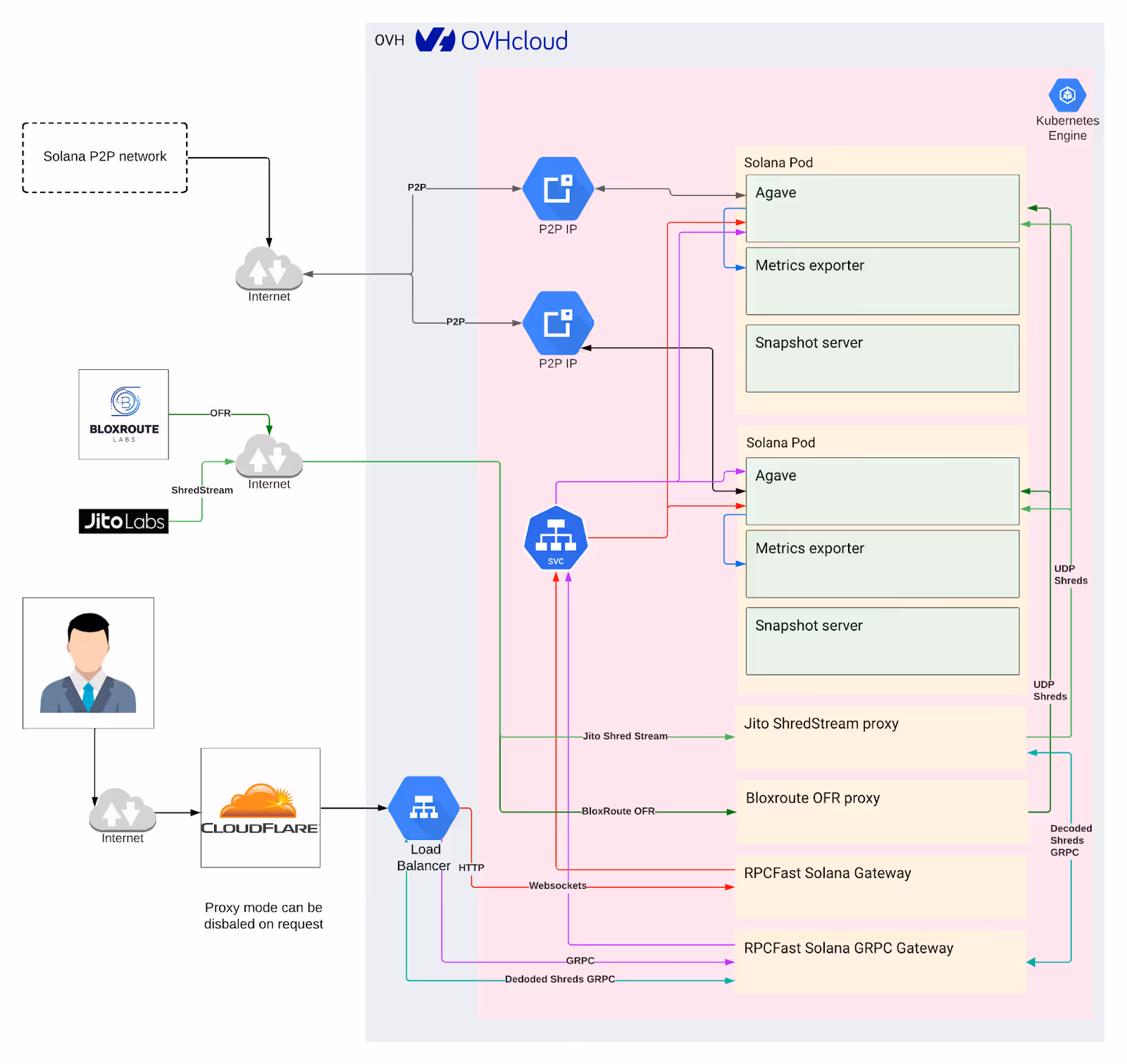 Let’s look closely under the hood of the Solana nodes deployment by RPC Fast for this case. The general architecture of the solution will be as follows: