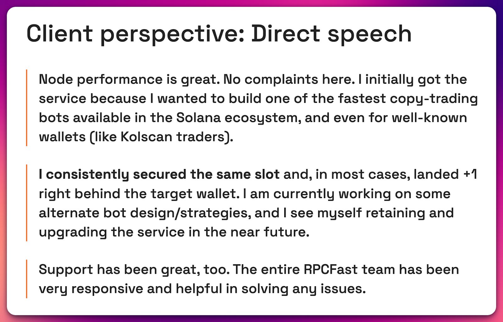 We recently helped a client build a Rust-based copy-trading bot designed to outperform retail platforms. By co-locating their VPS with an RPC Fast dedicated node in Frankfurt and utilizing Yellowstone gRPC for shred-level parsing, they achieved: