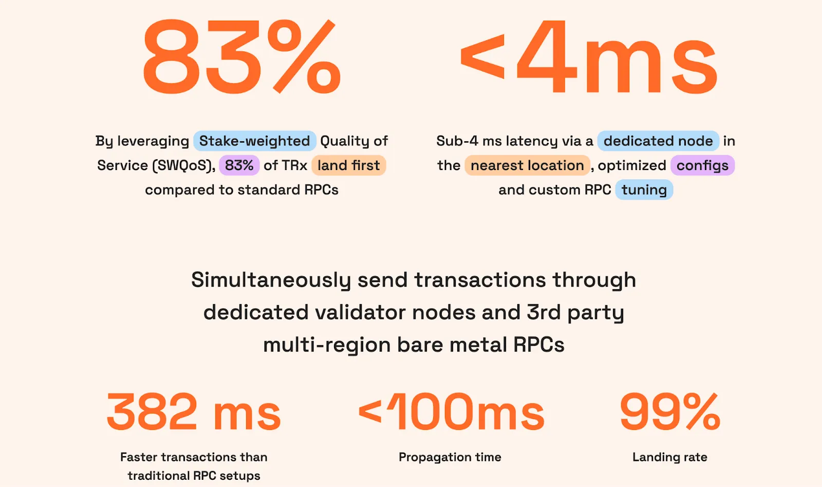 - swQoS (trusted, stake-weighted connections between RPCs and validators) materially reduces time to inclusion, especially for “slow” users.