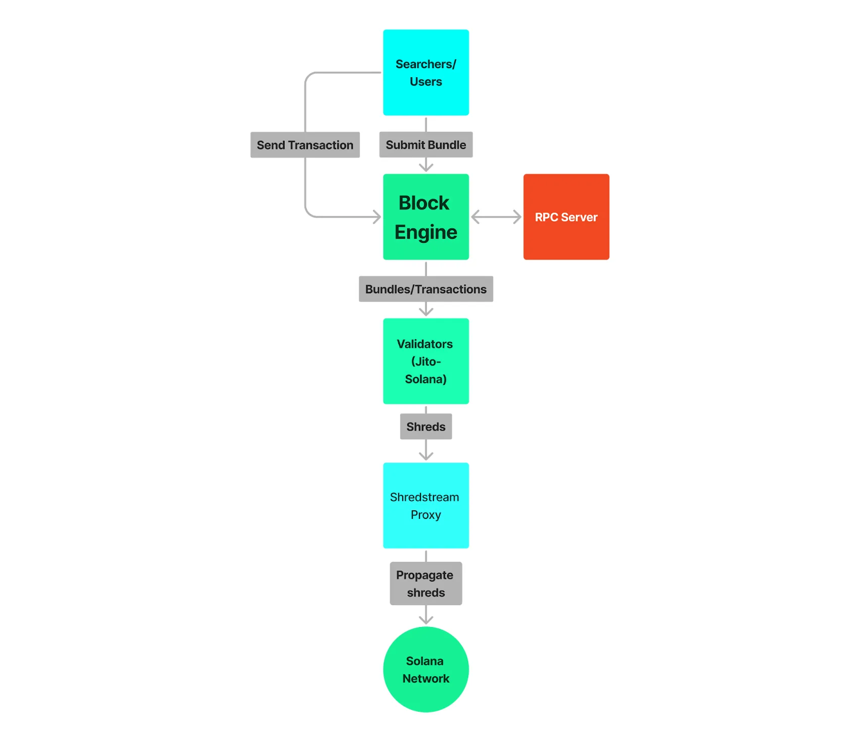 - Jito ShredStream delivers leader shreds hundreds of ms earlier than waiting for full gossip;