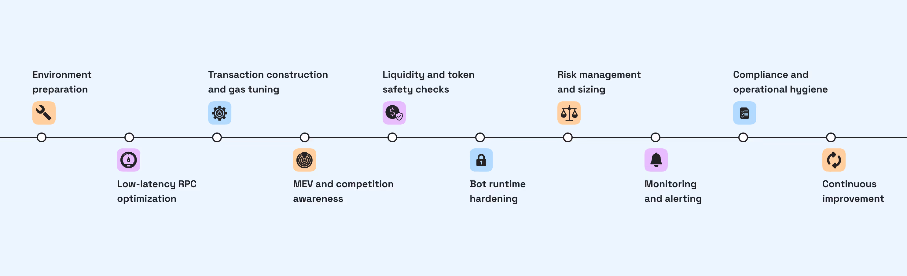 Beyond speed, a good sniper bot must be predictable, governable, and cheap to operate at scale. You want SLOs for latency and success rate, circuit breakers that pause strategies on anomaly thresholds, and a permissions model that separates research code from production keys.